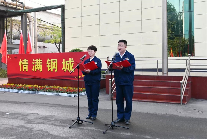 隨后,伴著悠揚(yáng)激情的音樂,兩名職工共同朗誦了《情滿鋼城 禮贊國慶》,歌頌偉大祖國72年來取得的舉世矚目的輝煌成就,表達(dá)了對祖國母親最美好祝愿,以及全力奮戰(zhàn)金色十月,打贏生產(chǎn)經(jīng)營翻身仗、爭氣仗的堅(jiān)定信心。