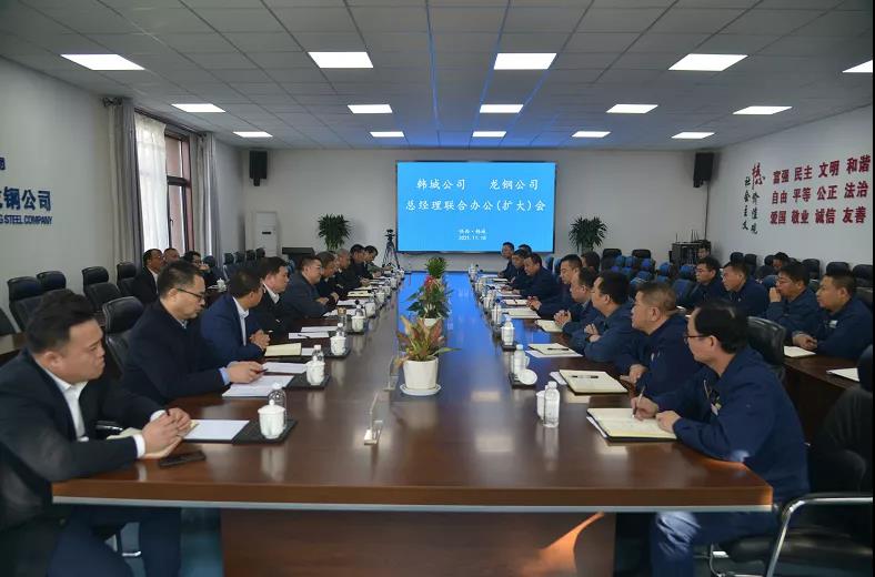 11月18日,龍鋼公司與韓城公司召開總經(jīng)理聯(lián)合辦公(擴(kuò)大)會。龍鋼公司黨委副書記、總經(jīng)理李都宏,黨委委員、副總經(jīng)理馮偉,副總工程師習(xí)曉峰,韓城公司副董事長、總經(jīng)理趙林,韓城公司副總經(jīng)理袁浩、韓城公司西安分公司總經(jīng)理助理趙剛及雙方公司相關(guān)部門負(fù)責(zé)人參加會議。會議由李都宏主持。
