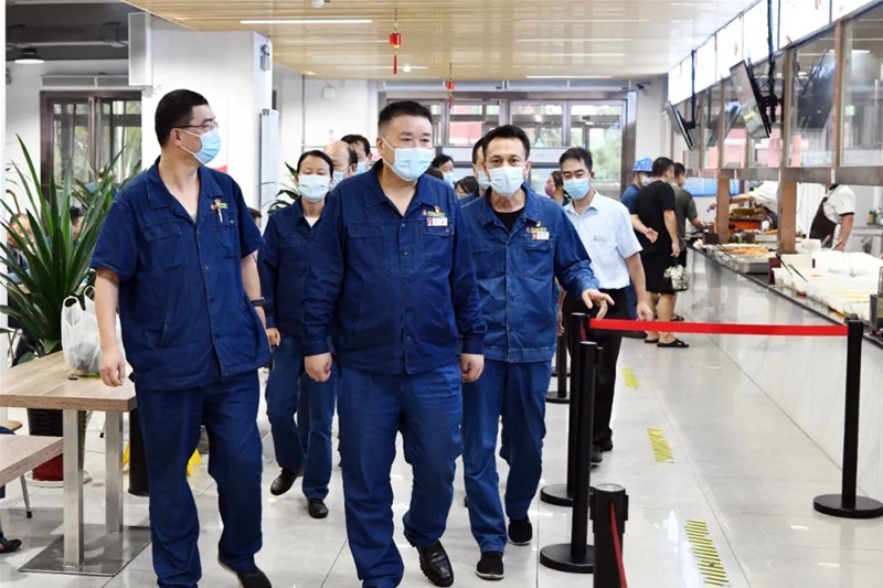 在職工餐廳防疫點,陳驍重點檢查了職工食堂的疫情防控制度和流程、廚師團隊每日上崗記錄和消殺臺賬、防疫工作措施和防疫物資儲備和使用情況。并表示,各餐廳要加強食材采購安全管理,減少高風險冷鏈食品采購,做好索票索證工作,以備后期溯源。各餐廳要高度重視餐廳防疫工作,做好分流、分餐制,維持好就餐秩序,減少人員聚集,讓職工吃得放心、吃得舒心。