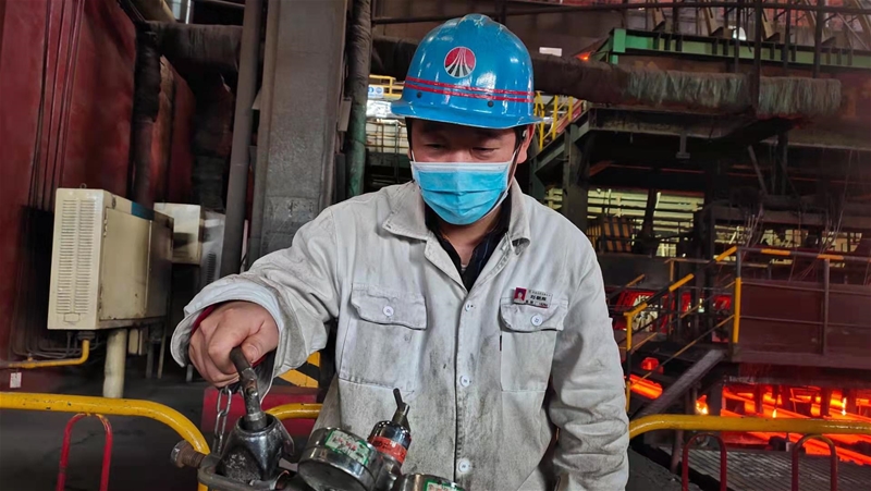 為確保鑄坯質(zhì)量,每隔五個小時需要進行一次換套管。張光輝穿著防護服,手拿拖圈直奔三流。中包工王曉輝精心關注著三流鋼水,配合張光輝完成更換套管工作。小強協(xié)助壓著配重,張光輝迅速將拖圈套入套管,并將套管卸下放置到廢鋼斗內(nèi)。這只是他們工作的其中一項,但不管是白天還是黑夜,他們始終以飽滿的工作熱情去完成每一次任務。