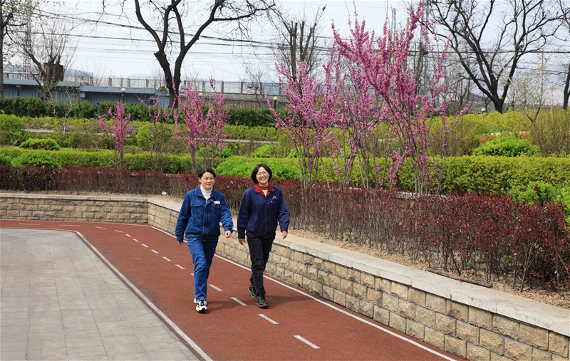 圖四:午后,職工們紛紛走出辦公室,活動活動筋骨,感受春日里的美好,享受運動帶來的快樂。