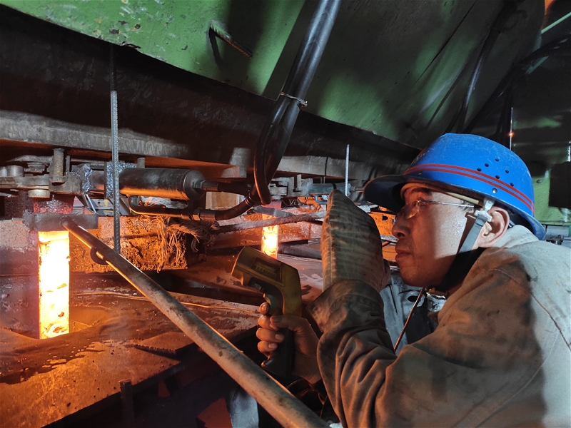 5月的一天,3#連鑄機(jī)檢修,面對時間緊、任務(wù)重、溫度高、人員少等諸多困難,他拿起毛巾擦一把熱汗拿著扳手沖在最前面,卸噴咀、清殘鋼、檢查確認(rèn)……狹小潮濕復(fù)雜的空間,炙熱的蒸氣伴隨著他繁忙的腳步,揮汗如雨是他真實(shí)的面容。測量溫度、更換套管、吊運(yùn)冷鋼等是他每天重復(fù)的工作,可他從不言苦,從不喊累。他常說,“勞模的稱號是榮譽(yù),更是組織的信任,我要在十里鋼城將勞模精神傳遞下去。”