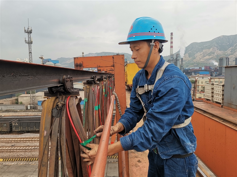 新站龍門吊鋼絲繩彎曲變形,必須停車檢修。時(shí)間緊,任務(wù)重,班組長段曉虎迅速制定好維修方案,安全員老劉布置好各項(xiàng)安全措施,一場檢修戰(zhàn)斗正式開始。摸著滾燙的扶梯,維修人員劉聰、孫宇一步一個(gè)臺階爬到龍門吊頂端,一股熱浪迎面襲來,進(jìn)入小車減速機(jī)里面,里面散發(fā)著一股濃濃的油籽的味道。“人心齊,泰山移。”上面的兩位維修人員,與地上的三位工友齊聲喊著“一二、一二……”來來回回在滾筒與吊鉤之間穿插,汗珠流到臉頰時(shí),他們就用胳膊肘擦一擦,抹得全臉都是淡淡的油污,豆粒般的汗珠沿著背夾往外流,衣服早已濕透。這樣的環(huán)境下他們毫不退縮,對鋼絲繩滾筒固定螺栓分別拆卸,一根全長100多米的鋼絲繩,在他們的配合下,僅用半小時(shí)就順利完成了,筆者不由為他們點(diǎn)贊。