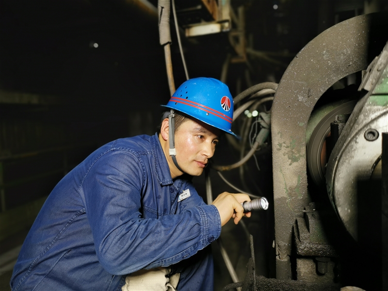 圖十:煉鋼廠連二作業(yè)區(qū)安檢員郭云峰正在對連鑄振動系統(tǒng)進行點檢。大負荷照明燈的強光打在他的臉龐上,他一個點一個點地仔細檢查著,一顆顆滾落的汗珠里,包裹的都是他對設(shè)備的精心。