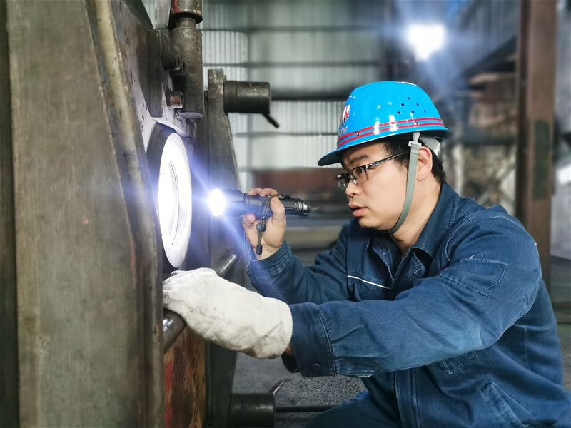 功夫不負(fù)有心人。最終,他發(fā)現(xiàn)是蓄能器壓力不足的問題。隨后對蓄能器進(jìn)行加壓調(diào)試,磨機(jī)最終恢復(fù)正常。“遇到問題不要怕,我們要沉下心來,逐一排查,沒有解決不了的問題,只是沒有找到正確的方法。”在噴煤工段班組學(xué)習(xí)會上,李鑫分享道。