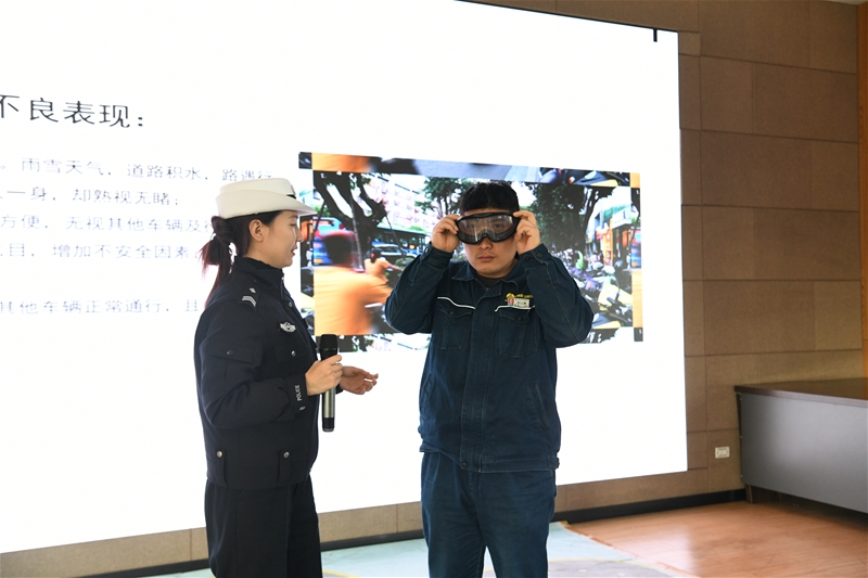 此次培訓(xùn)邀請韓城市公安局交警中隊(duì)資深民警進(jìn)行授課。她從交通事故數(shù)據(jù)和視頻切入,結(jié)合實(shí)際案例,講解事故危害,并進(jìn)行事故成因與違法后果剖析,以案說法深入淺出地解讀了相關(guān)交通安全法規(guī),提升了全員遵章守法和依法安全行車意識。同時,她結(jié)合安全行車實(shí)際,利用事故展板、現(xiàn)場VR眼鏡模擬醉酒駕駛等方式與參培人員互動,讓參培人員通過現(xiàn)場模擬掌握冬季行車安全隱患,特別是雨雪天控距、霧天用燈等安全駕駛技巧與應(yīng)急處理方法,進(jìn)一步鞏固加深了駕駛員對交通安全的理解,普及了交通安全知識。培訓(xùn)最后,還進(jìn)行了知識測試,以考促學(xué),鞏固學(xué)習(xí)成效。