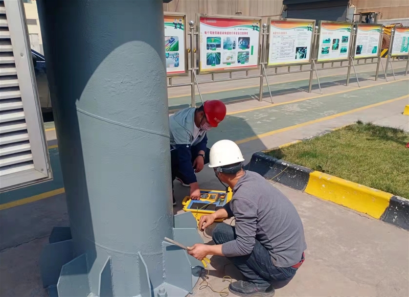 此次檢測,嚴格執(zhí)行防雷技術(shù)規(guī)范和檢測程序,共繪制完善防雷接地示意圖63張,對公司家屬樓、廠區(qū)所有廠房、煤氣柜、煤氣管網(wǎng)、加油站、變電站及通訊機房等設(shè)備設(shè)施進行了全面檢測。經(jīng)檢測,各建筑物及設(shè)施設(shè)備均符合防雷要求。此次防雷檢測有效降低了雷雨季節(jié)設(shè)施設(shè)備的運行風險,為公司在雷雨季節(jié)安全運行奠定了堅實基礎(chǔ)。