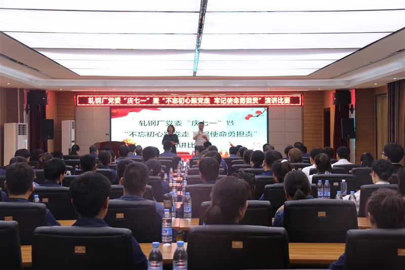為慶祝中華人民共和國(guó)70華誕和建黨98周年,弘揚(yáng)愛(ài)國(guó)主義精神,進(jìn)一步貫徹黨中央“不忘初心 牢記使命”主題教育,迅速掀起開(kāi)展主題教育的熱潮,激發(fā)全體干部職工積極投身干事創(chuàng)業(yè)熱情,在建黨98周年的隆重日子里,軋鋼廠黨委組織開(kāi)展了“慶七一”暨“不忘初心跟黨走,牢記使命勇?lián)?zé)”為主題的演講比賽活動(dòng)。