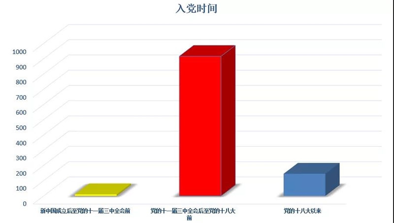 新中國(guó)成立后至黨的十一屆三中全會(huì)前(1978年12月18日)入黨的10名,黨的十一屆三中全會(huì)后至黨的十八大前(2012年11月8日)入黨的916名,黨的十八大以來入黨的145名。