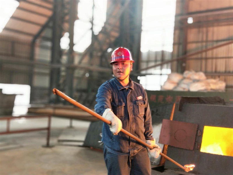 第一站來到了煉鐵廠5號高爐,在爐前班長簡單介紹完拍攝地點(diǎn)和安全注意事項后,我們正式進(jìn)入拍攝現(xiàn)場。首先直入眼簾的是5號高爐副爐長薛永輝和爐前工人一起出鐵的火熱場面。爐前班長王拓手持鋼釬在查看出鐵口,奔涌的鐵流猶如壺口瀑布般傾瀉而出,炙熱滾燙的鐵水烤得臉膛皮膚就像蒸桑拿一樣。只見薛永輝瞅準(zhǔn)時機(jī),熟練地拿起取樣勺快速取出鐵樣,穩(wěn)穩(wěn)地放進(jìn)盛樣盤中。“剛來爐前的新工根本熬不住這出鐵的高溫,經(jīng)常是一次取樣下來衣服就像雨淋一樣,喝幾大杯水,全排成汗了,這僅僅還只是不到三伏!我們多年來早就習(xí)慣了這種環(huán)境,現(xiàn)在還舍不得離開高爐呢”旁邊一位老爐前工很爽朗地講著他的工作。看得出這些冶煉的漢子們早已經(jīng)把這種火熱的工作當(dāng)做了生活中不可分割的一部分,他們就是高爐的守護(hù)神??吹竭@些絕美的畫面,拿著“長槍短炮”的攝影愛好者們快速按下快門,用一個個鏡頭記錄著爐前工最美的瞬間。