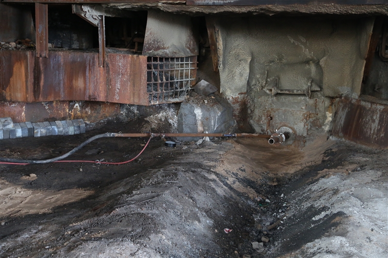 項目簡介:402#皮帶機尾區(qū)域是崗位工日常作業(yè)必須的位置,長期以來因水渣帶水在皮帶運行過程中大量溢流至機尾及,渣水堆積后亂流?,F(xiàn)場研究,在機尾滾筒處制作1400*800mm敞口形水槽,中間加設(shè)渣水分離板,將皮帶在運行過程中的渣水全部回收至水槽中,由渣水分離板分離后,水用膠皮管引入渣處理回收池中。改造后區(qū)域積水得到了徹底解決,減少了作業(yè)人員的安全隱患及現(xiàn)場衛(wèi)生環(huán)境得到治理,又回收了積水二次利用,對安全生產(chǎn)工作有了很大改善。