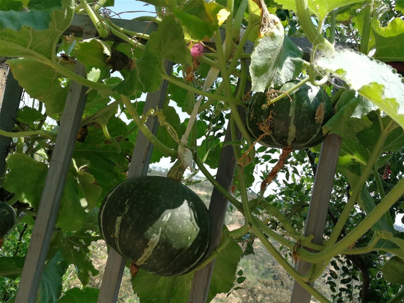 來(lái)到家里的后院,剛跨過(guò)后院門(mén)就看到爺爺種的各種花草,在遠(yuǎn)一些是這個(gè)季節(jié)的蔬菜。從記事起爺爺就愛(ài)種花草,今年也一樣,葫蘆藤上結(jié)滿(mǎn)了小葫蘆,隨風(fēng)擺動(dòng),就像是一群葫蘆娃在向我打招呼,情不自禁的摘下一個(gè)洗了洗讓孩子玩。記得小時(shí)候自己偷偷的摘了個(gè)葫蘆去和同伴們玩,回來(lái)讓爺爺一頓好罵。后院的大部分地方爺爺都種上了菜,大片的辣椒,幾個(gè)黃瓜騰,西紅柿,茄子和豆角……看著這些新鮮綠色的食材我覺(jué)得我胃口大開(kāi)。