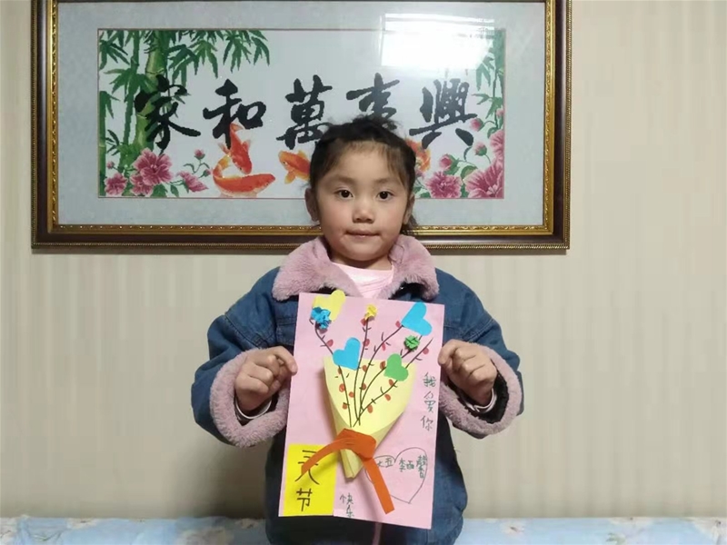 “自己的事情自己做,媽媽的事情搶著做……”下班剛走到樓梯上,就聽見女兒歡快的聲音從屋里飄到了樓道里,我一邊欣賞著這份美好,一邊拿鑰匙開門,剛把鑰匙插進(jìn)去,女兒便打開了門,笑盈盈地送上了她在學(xué)校完成的手工作品——一幅美麗的紙畫,那是用彩色紙做成的,一朵朵小花和愛心粘在彩色紙上,里面用油畫棒畫著美麗的枝丫,上面還有女兒地字體“媽媽,三八節(jié)快樂,我愛你!”一邊雙手遞到我的面前,一邊甜甜地說:“媽媽節(jié)日快樂!”此刻我真的驚呆了,心中不由泛起一絲激動(dòng)和感動(dòng)。接過女兒手中的禮物,我重重地在她的臉頰上親了一口。隨后,她又把拖鞋拿到我的跟前說:“媽媽請(qǐng)換鞋”,待我換好鞋,她又把我上班的鞋子擺放好。手拉著我坐到沙發(fā)上,一邊幫我捶背,一邊唱:“我的好媽媽,下班回到家,工作了一天多么辛苦呀,讓我親親你吧,讓我親親你吧,我的好媽媽……”女兒地小拳頭敲打在酸困得肩膀上,小嘴親在我的臉頰上,我的心里頓時(shí)樂開了花,我多么希望時(shí)間可以駐足在此刻!