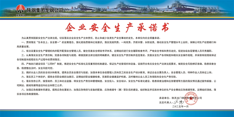 龍鋼公司安全生產(chǎn)承諾書