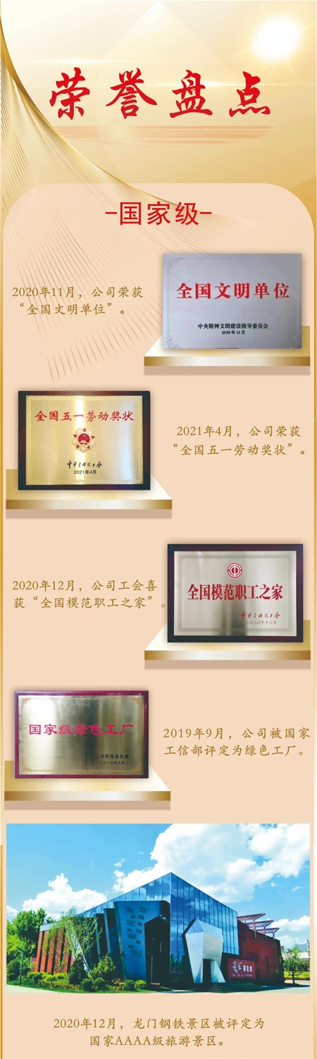 榮譽(yù)盤點是邁向美好未來的一次能量積蓄,新時代是奮斗者的時代。讓我們初心不改,砥礪前行,全身心投入到落實集團(tuán)“2.26”黨委(擴(kuò)大)會議精神上來,集中精力辦好自己的事,干群同心奮戰(zhàn)“雙目標(biāo)”、夯實“雙掛鉤”、嚴(yán)格“四類層”,始終牢記“感恩、知責(zé)、律己、有為”八字要求,扎實踐行“黨建領(lǐng)航、班子引領(lǐng)、干部走在前列”工作機(jī)制,扛死肩、硬負(fù)責(zé),以龍鋼人的擔(dān)當(dāng)和使命,譜寫更加輝煌的新篇章。