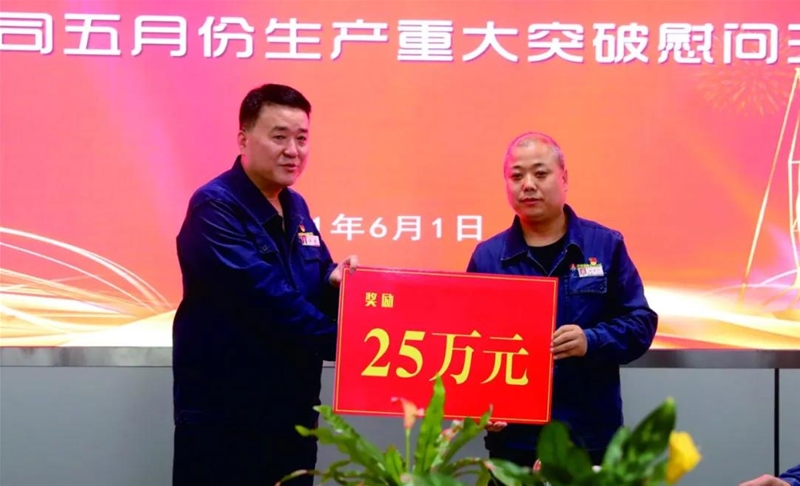 公司黨委書(shū)記、董事長(zhǎng)陳驍向各單位發(fā)放了生產(chǎn)重大突破和服務(wù)保障獎(jiǎng)勵(lì)。