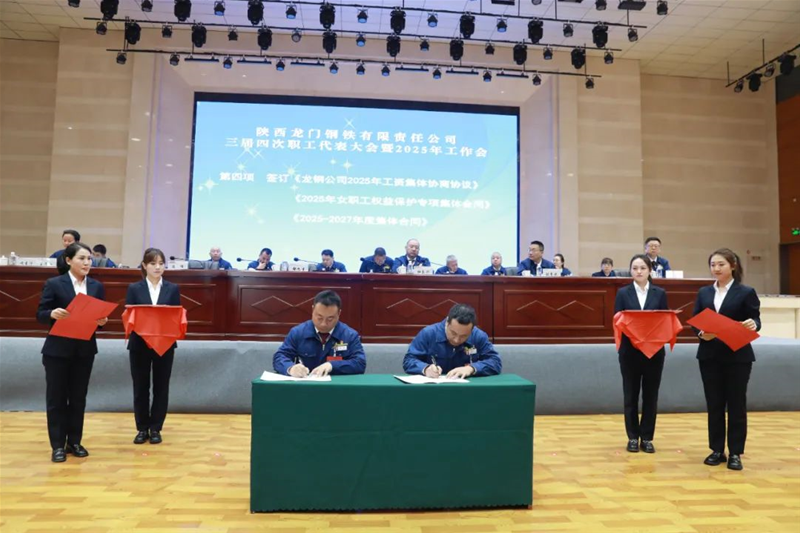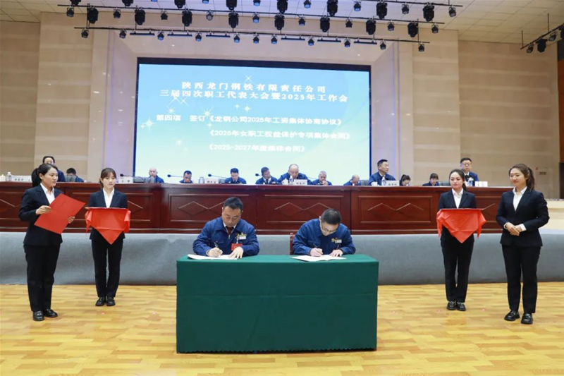 會上簽訂了《龍鋼公司2025年工資集體協(xié)商協(xié)議》《2025年女職工權益保護專項集體合同》《2025—2027年度集體合同》《2025年經(jīng)營目標責任書》《2025年安全環(huán)保目標責任書》。