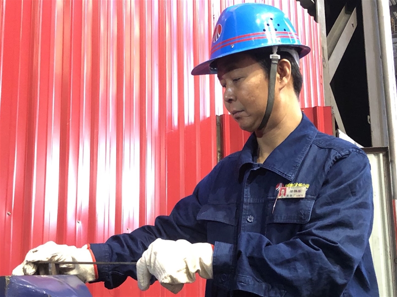圖三:煉鋼廠連二作業(yè)區(qū)安全員張保銀正在檢查煤氣設(shè)備,現(xiàn)場的溫度持續(xù)攀升,汗珠順著他的臉頰滾落,但是他始終牢記自己的職責(zé)與使命,不放過任何一個細節(jié),用實 際行動踐行著自己的安全誓言。
