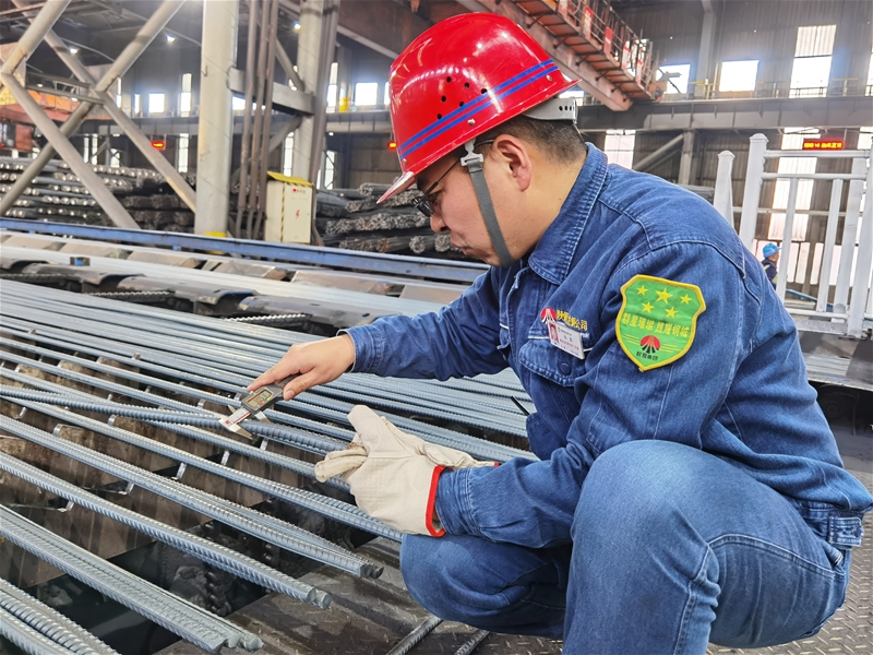 在周圍環(huán)境溫度達(dá)40℃的棒材三線,一股熱浪襲來(lái),作業(yè)長(zhǎng)張?chǎng)晤櫜簧现丝,正用卡尺測(cè)量棒材幾何尺寸,以實(shí)際行動(dòng)踐行“人人做精英,根根求精品”的“精”文化,確保生產(chǎn)出來(lái)的每一根鋼材都是精品。