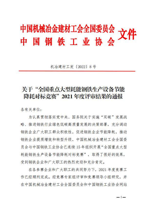 近日,從中國鋼鐵工業(yè)協(xié)會(huì)獲悉,由中國機(jī)械冶金建材工會(huì)全國委員會(huì)與中國鋼鐵工業(yè)協(xié)會(huì)聯(lián)合開展的“2021年度全國重點(diǎn)大型耗能鋼鐵生產(chǎn)設(shè)備節(jié)能降耗對(duì)標(biāo)競(jìng)賽”結(jié)果揭曉,龍鋼公司5#轉(zhuǎn)爐榮獲節(jié)能降耗“優(yōu)勝爐”、450m2燒結(jié)機(jī)榮獲節(jié)能降耗“創(chuàng)先爐”。尤其5#轉(zhuǎn)爐是陜鋼集團(tuán)單座爐機(jī)線首次獲得優(yōu)勝爐,標(biāo)志著陜鋼集團(tuán)設(shè)備能耗水平逐步邁入行業(yè)先進(jìn)序列。